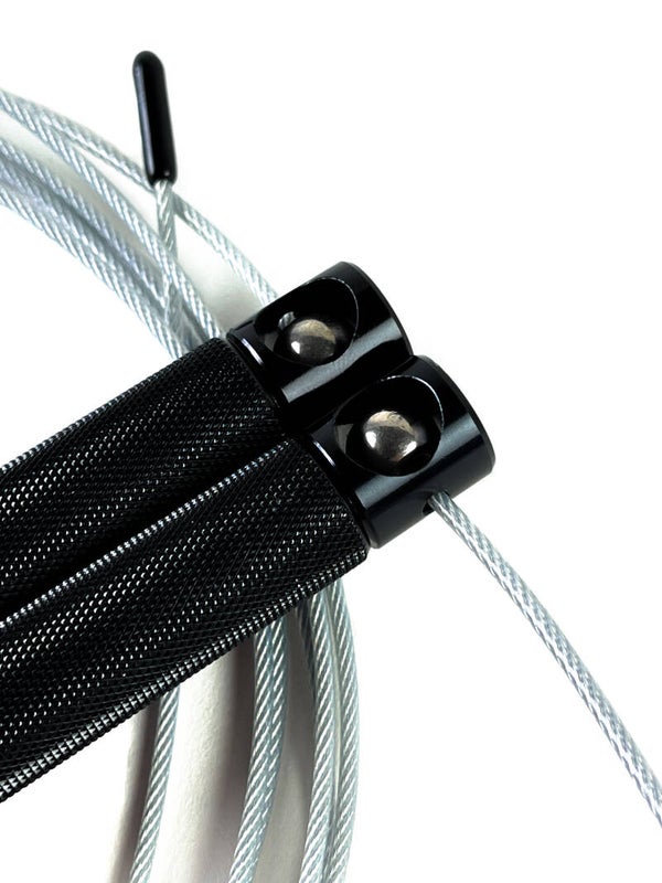Dit is een speedrope gemaakt van aluminuim handvatten van licht gewicht. De handvatten hebben grip lines voor optimale grip. Er zitten perfecte lagers in voor ideale en super snelle roatie. Met de dunne kabel van maar liefst 2mm schiet het draad onder je door.